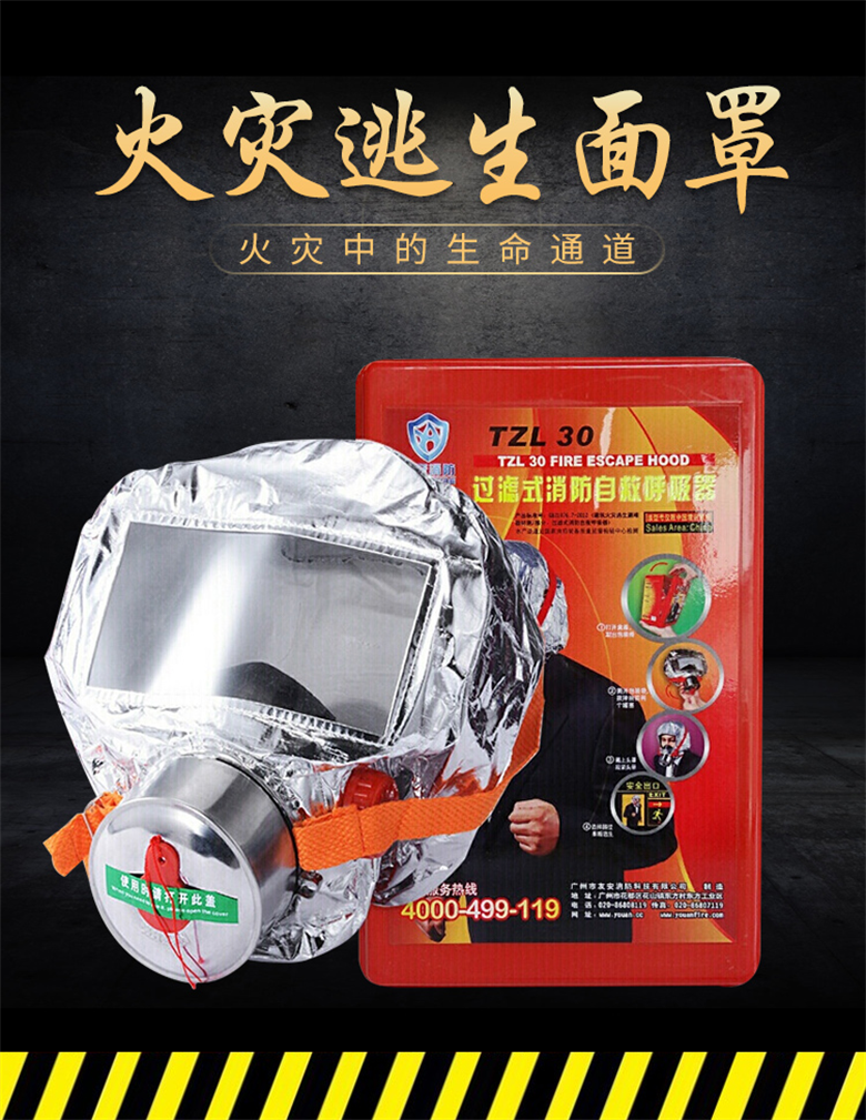 ●用途:·可广泛装备于高层建筑及民用建筑、宾馆、银行、商场、娱乐厅及工厂等场所,时火灾时人员紧急逃生的有效呼吸保护装置。
