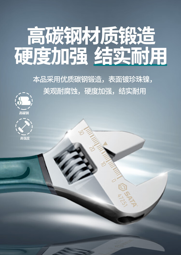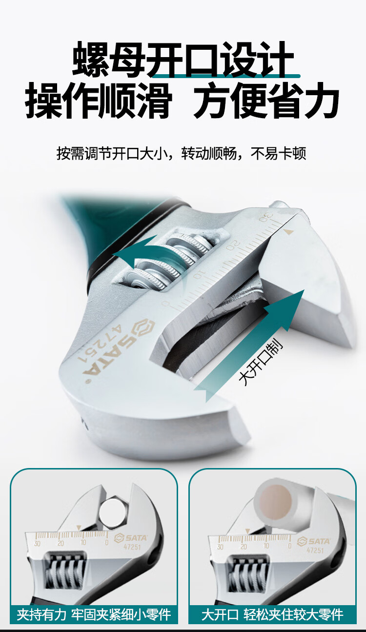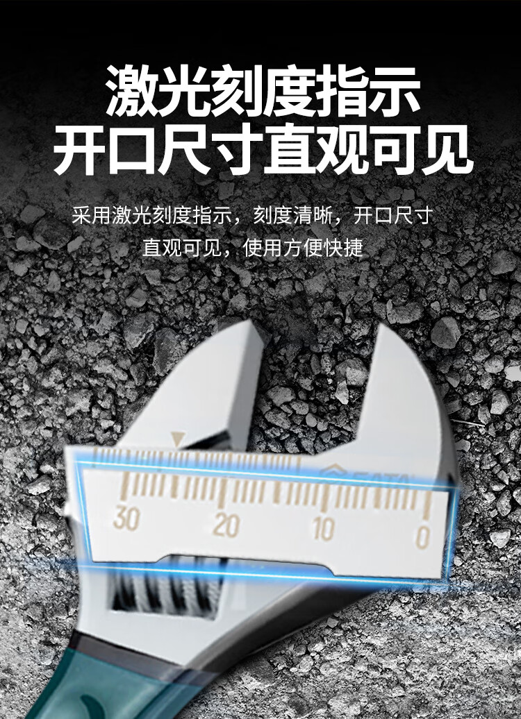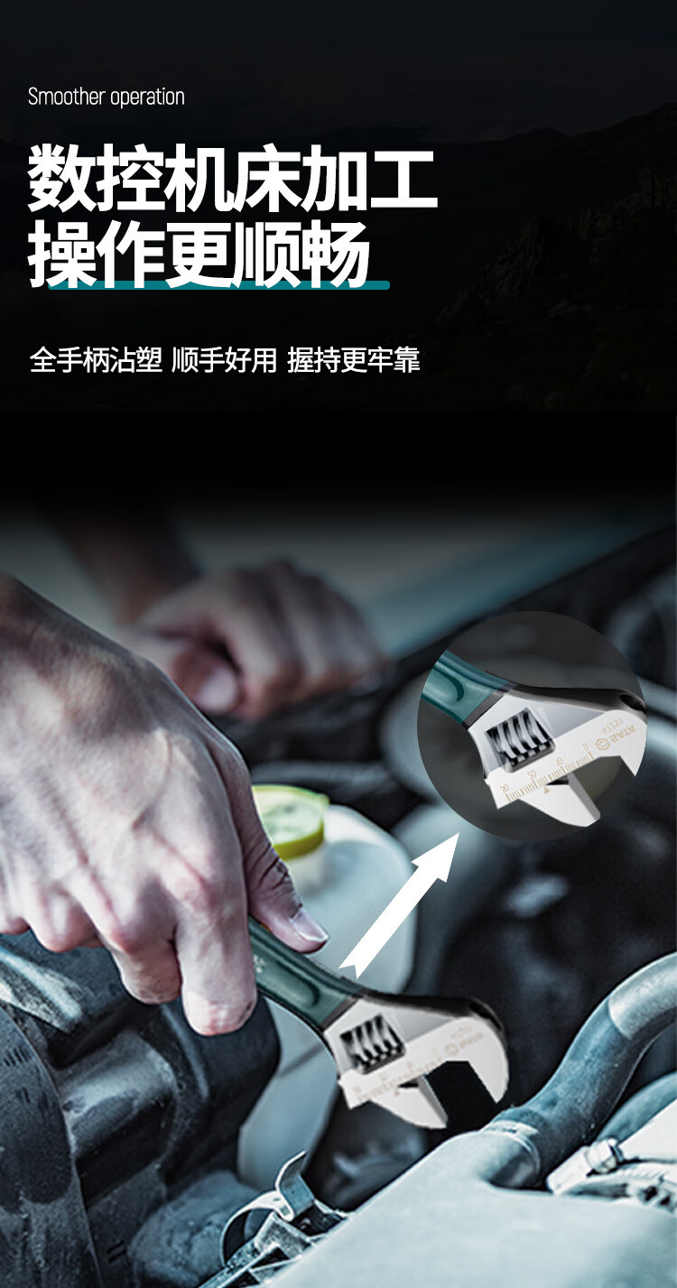 ●产品特征:·优质碳钢材质·表面镀珍珠镍,耐腐蚀,更美观·全手柄沾塑,握持更牢靠·激光刻度指示,开口尺寸更直观·数控机床加工,操作更顺畅·头部特殊热处理,强度更高,更耐磨,使用寿命持久