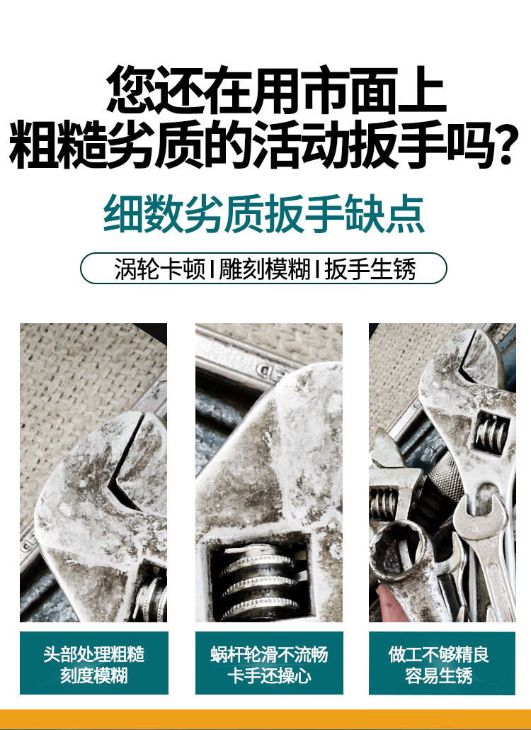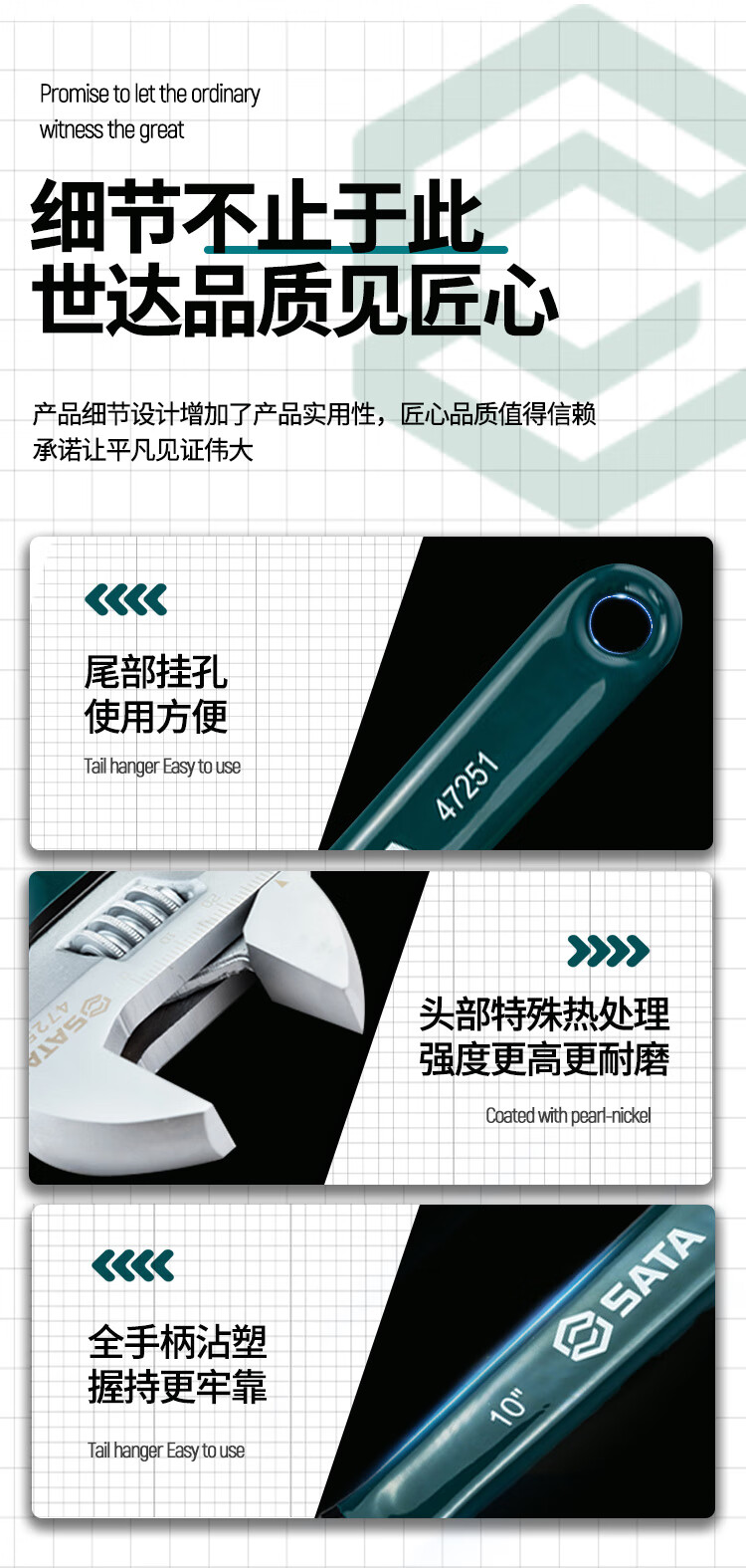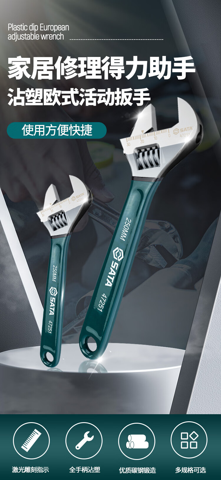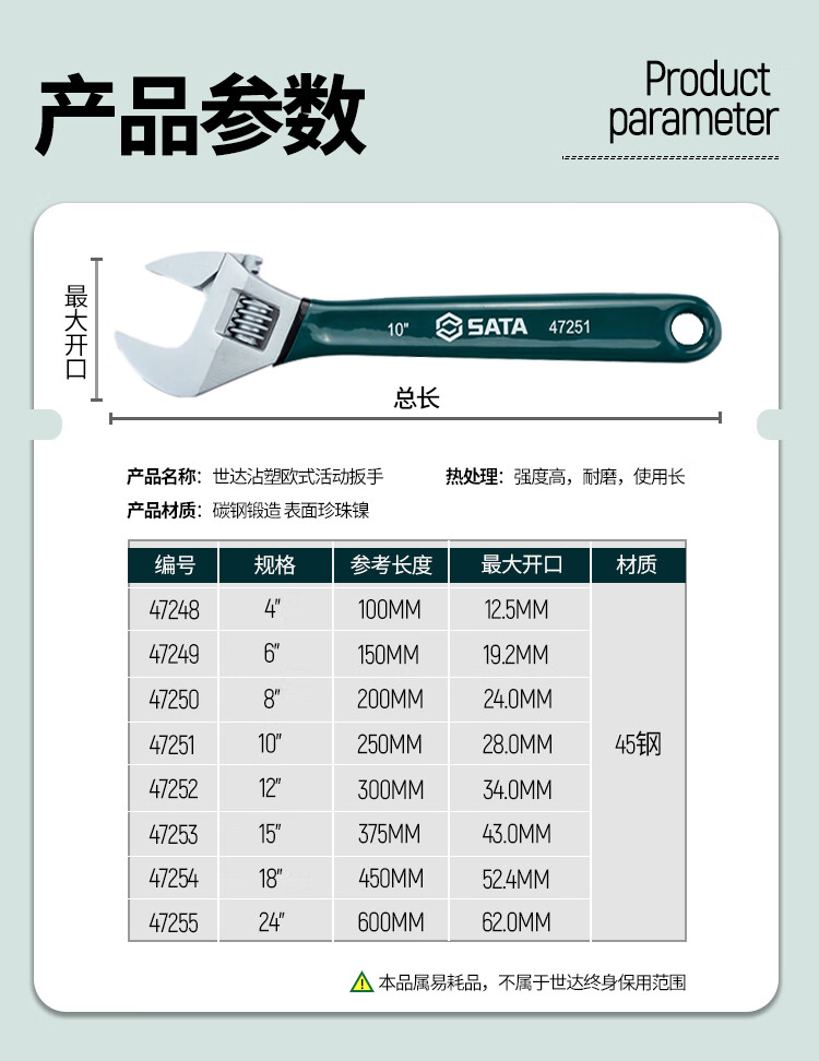 ●产品特征:·优质碳钢材质·表面镀珍珠镍,耐腐蚀,更美观·全手柄沾塑,握持更牢靠·激光刻度指示,开口尺寸更直观·数控机床加工,操作更顺畅·头部特殊热处理,强度更高,更耐磨,使用寿命持久