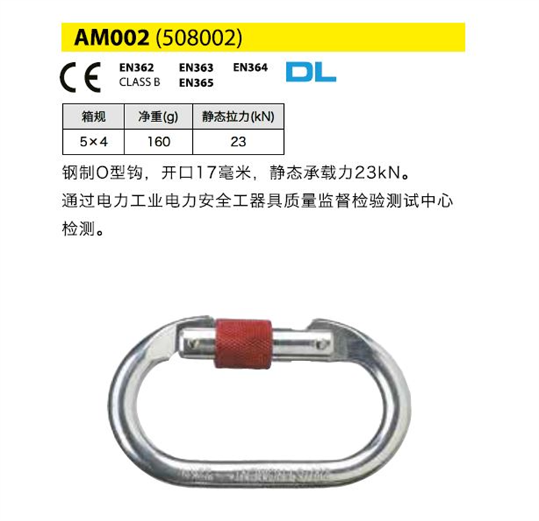 ●产品特征:·钢制O型钩,开口17毫米。·通过电力工业电力安全工器具质量监督检验测试中心检测。