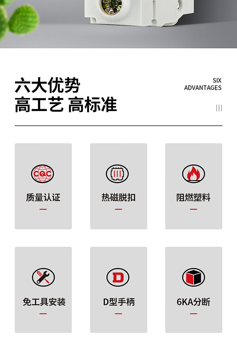 ●产品特征:·德力西DZ47s小型标准断路器适用于交流50Hz,额定电压230V/400V的低压终端配电系统;·主要功能:短路保护、过载保护、控制、隔离;·全新附件,保护功能更加全面;·全新外观设计,传承经典红色手柄;·全系列一致的6kA分断能力,性能更加优越,增加1P+N,3P+N两种级数,规格更加全面