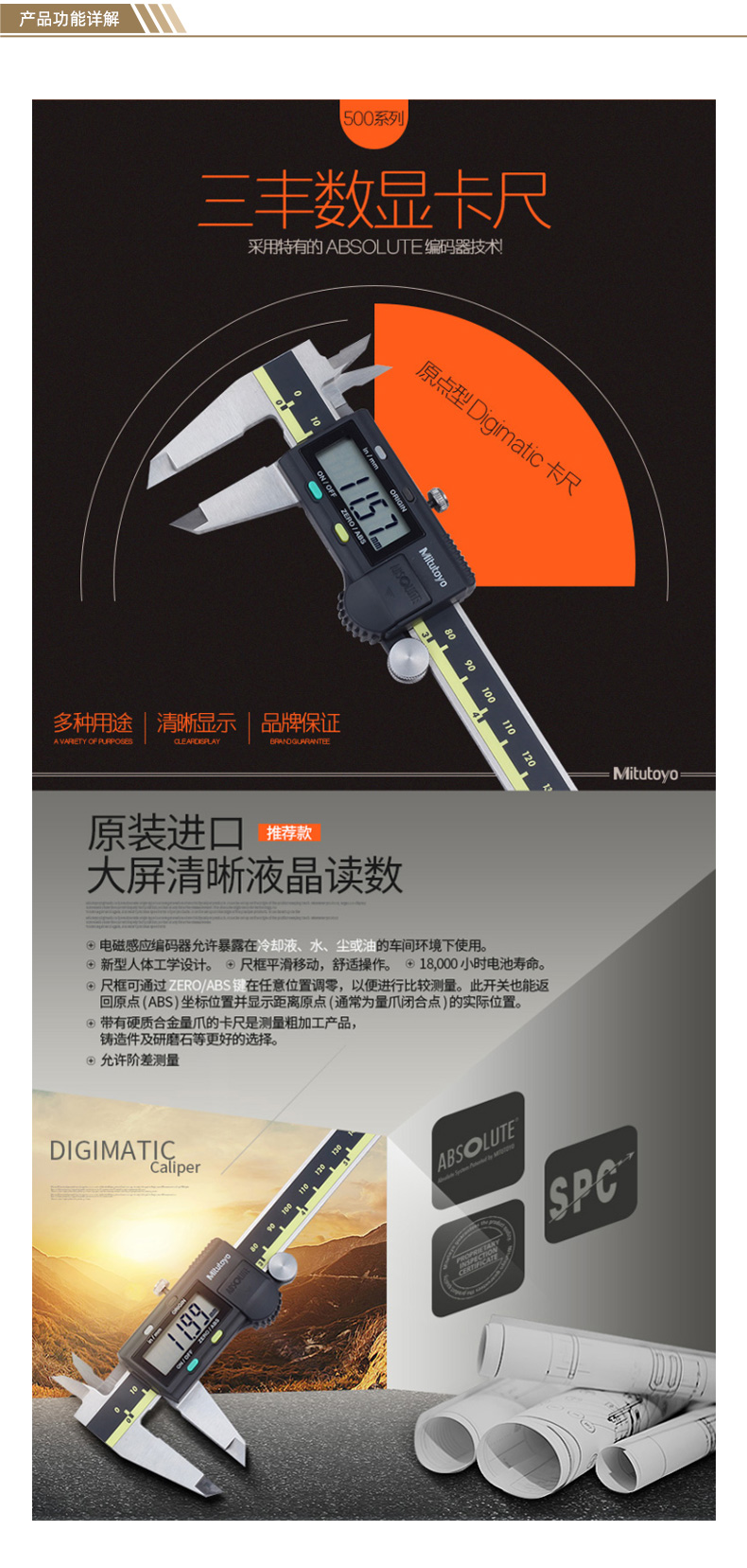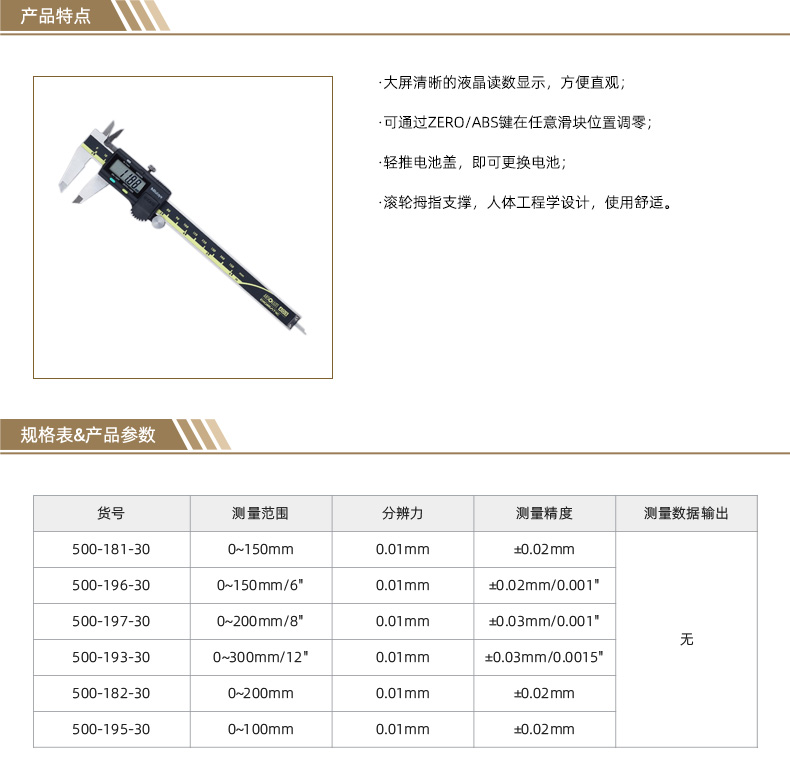 ●产品特征:·大屏清晰的液晶读数显示 ·可通过ZERO/ABS键在任意滑块位置调零 ·带有拇指调节滚轮