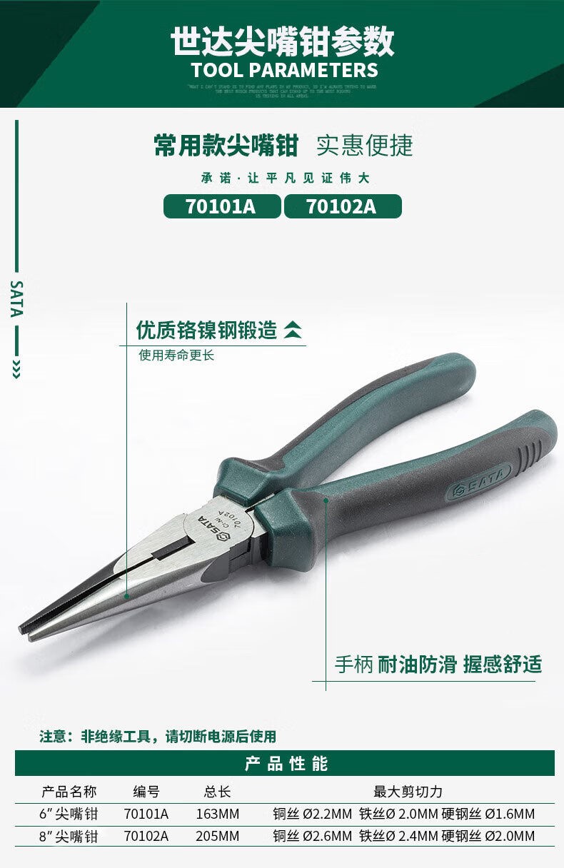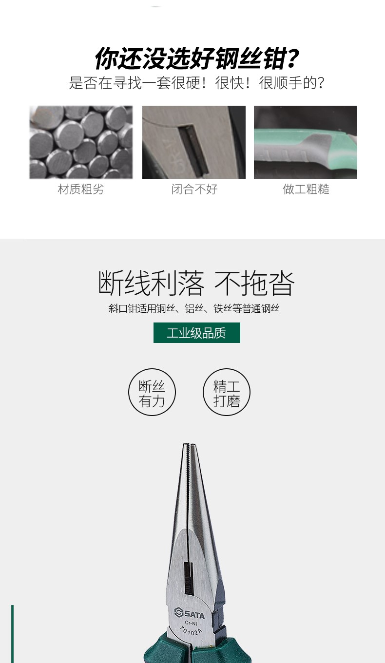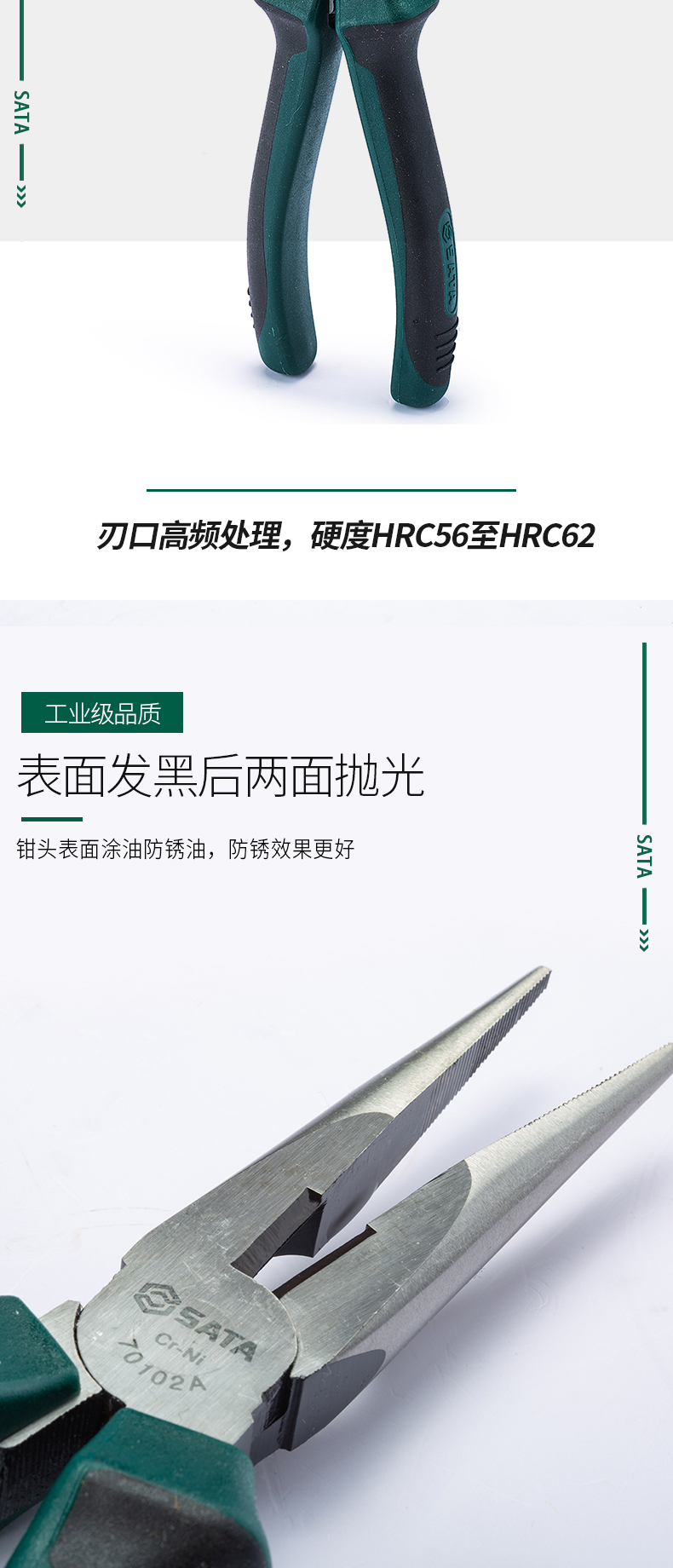 ●产品特征:·钳体铬镍钢,使用寿命延长·表面发黑后两面抛光,防锈效果好·刃口高频特殊处理,可剪钢线硬度达HRC43·TPE双色柄,耐油防滑
