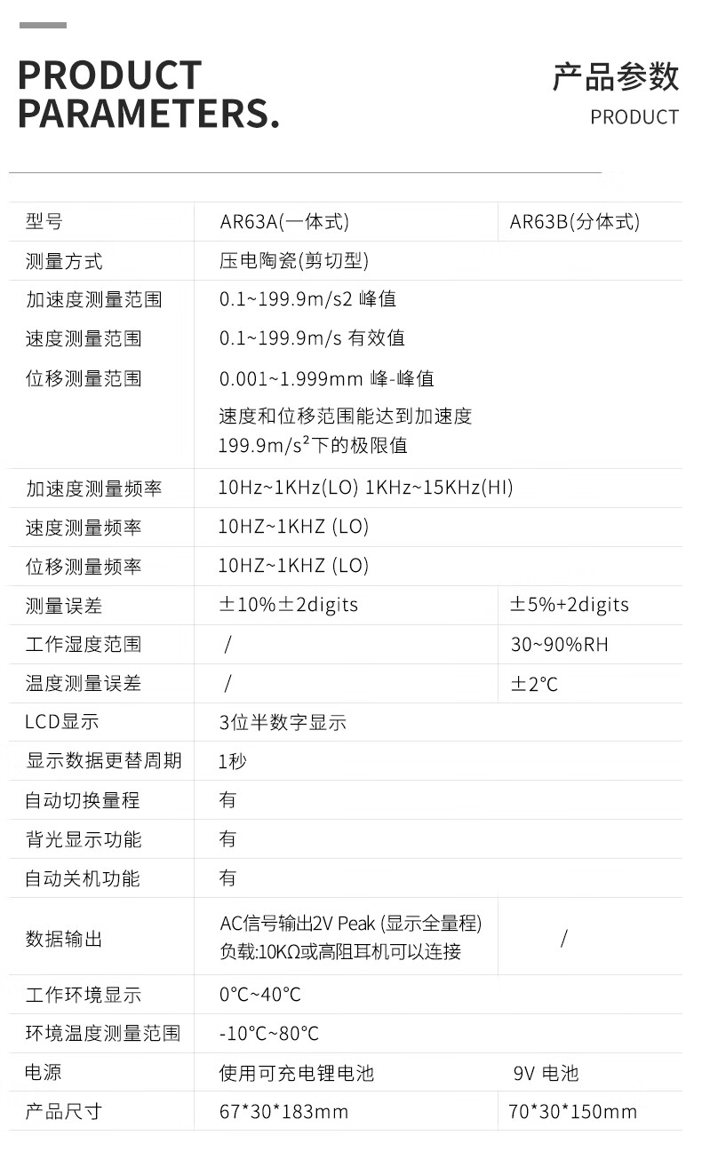 ·加速度测量频率:10HZ~1KHZ(LO) 1KHZ~15KHZ(HI)