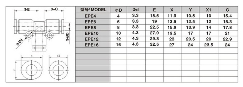 ●产品特征:·工作压力:10Bar·工作温度:60℃·T形三通,三接管口径相同