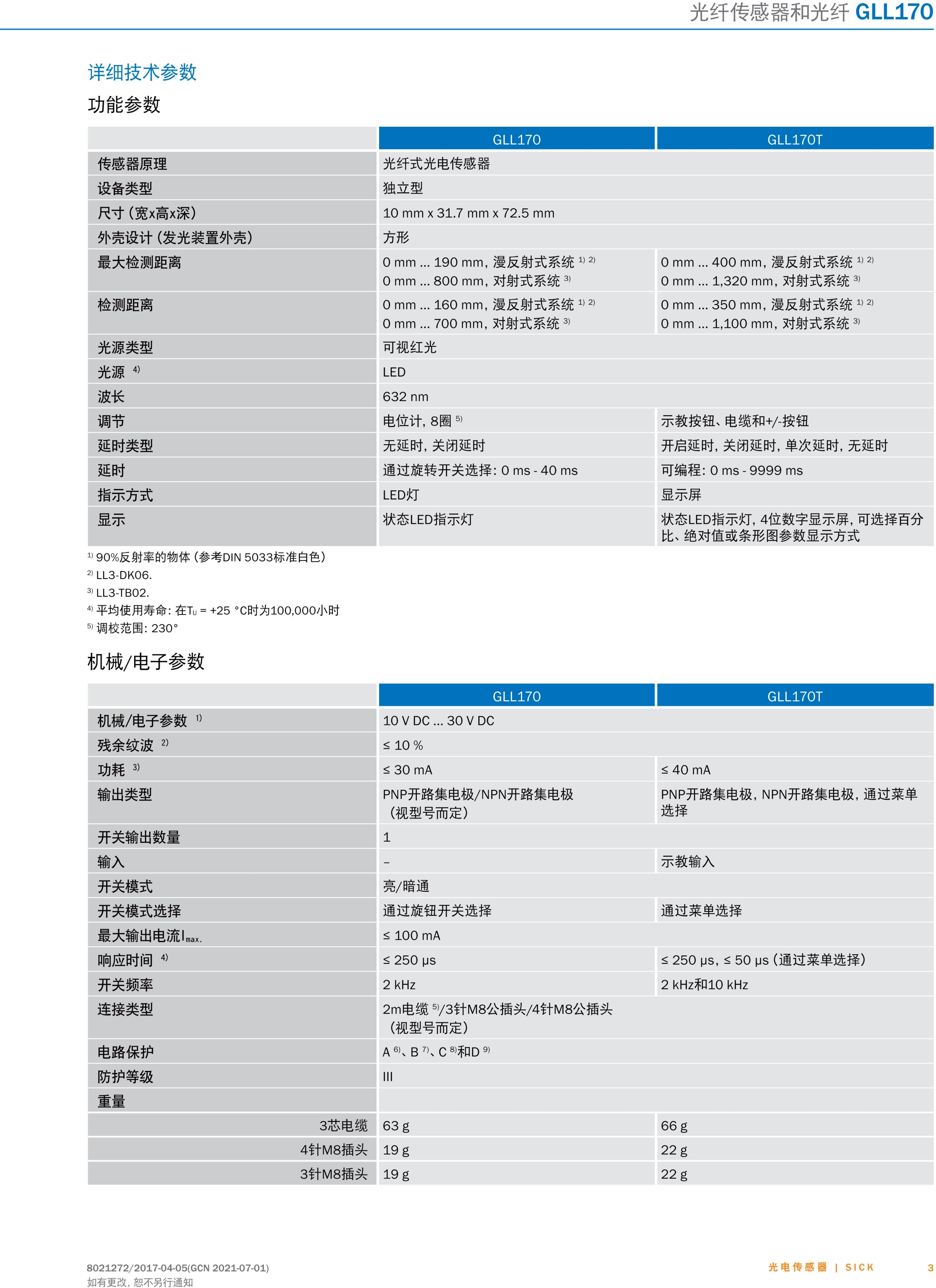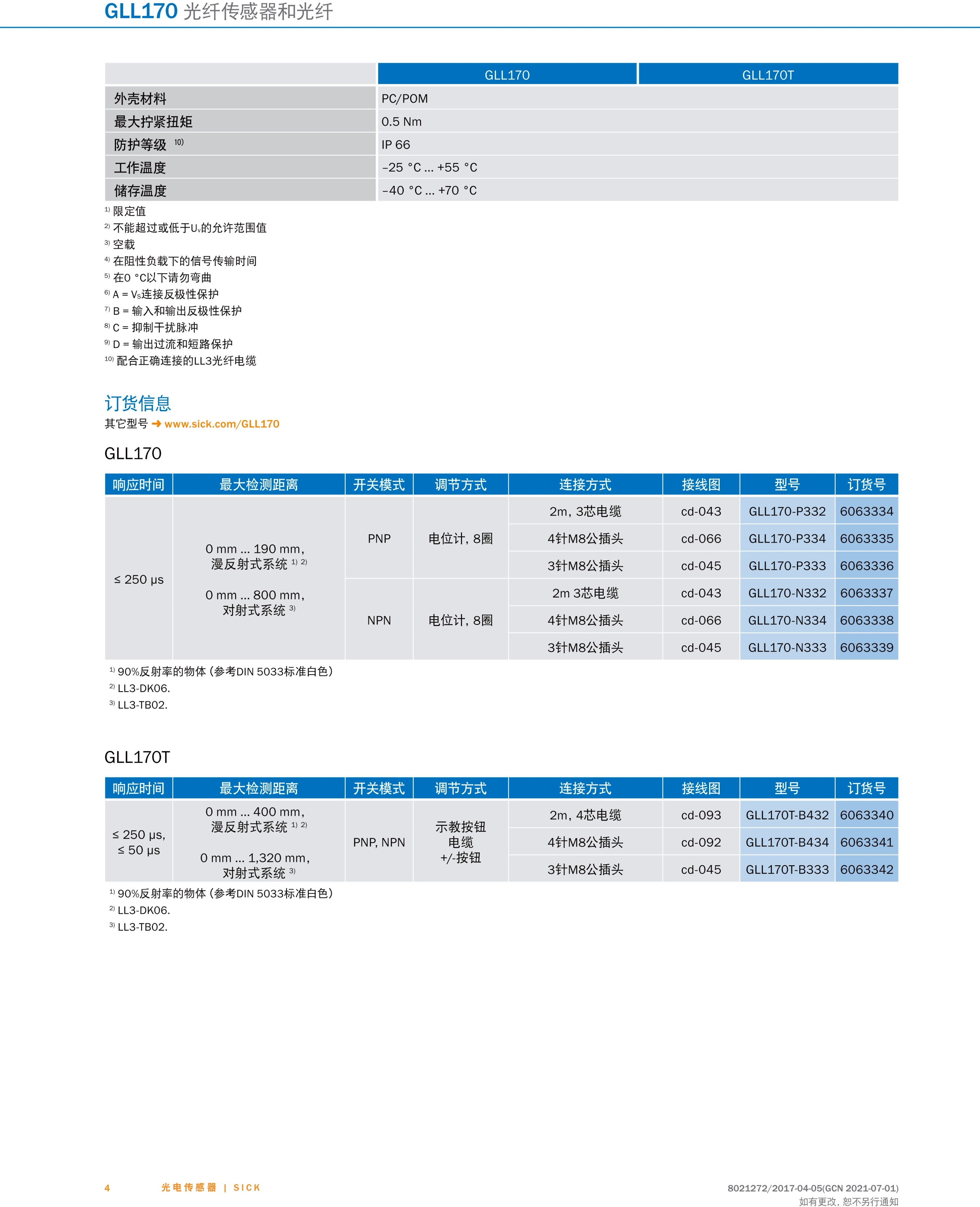 ●产品特征:SICK/西克 GLL170T GLL170系列光纤传感器