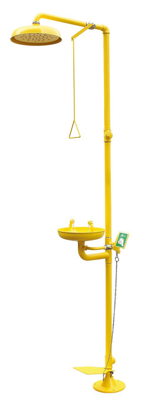 ●产品特征:・复合式洗眼器为不锈钢喷塑。洗眼喷头中配备有一个直径28毫米的网眼滤水器和防尘盖。通过脚踏板无需通过作业人员的手就可以打开洗眼器・材质:304不锈钢喷塑・进水口:1-1/4" 出水口:1-1/4"・出水量:淋浴喷头120-180升/分钟 洗眼器喷头 12升/分钟