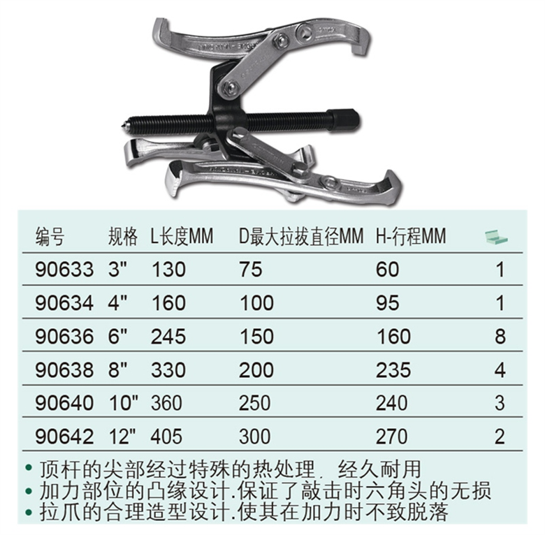 ●产品特征:·顶杆尖部经过特殊热处理,经久耐用·加力部位为凸缘设计,敲击时保证六角头无损·拉爪的造型设计合理,加力时不会脱落