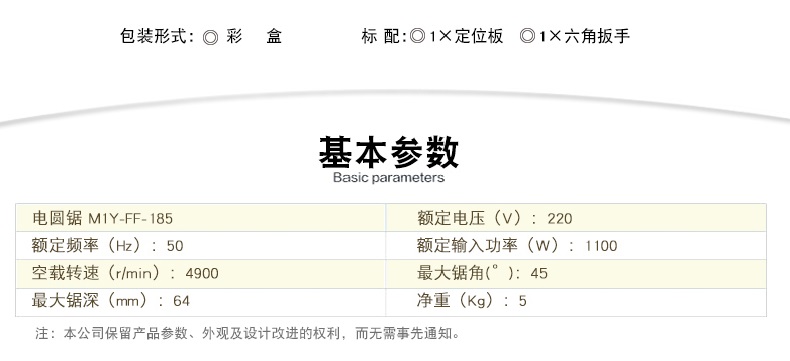 ●产品特征:·坚固、耐用,使用寿命长。·小巧便携,功率强劲。全封闭式切割导向罩,保证切割时的安全。·切割能力:45°:64mm