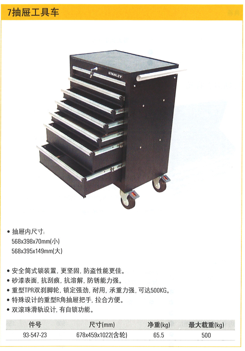 ●产品特征:抽屉大承重40KG,整体承重500KG 安全筒式锁装置,更坚固,防盗性能更佳 砂漆表面,抗刮痕,抗溶解,防锈能力强 重型TPR 双刹脚轮,锁定强劲,耐用 特殊设计的重型R 角抽屉把手,拉合方便 双滚珠滑轨设计,有自锁功能