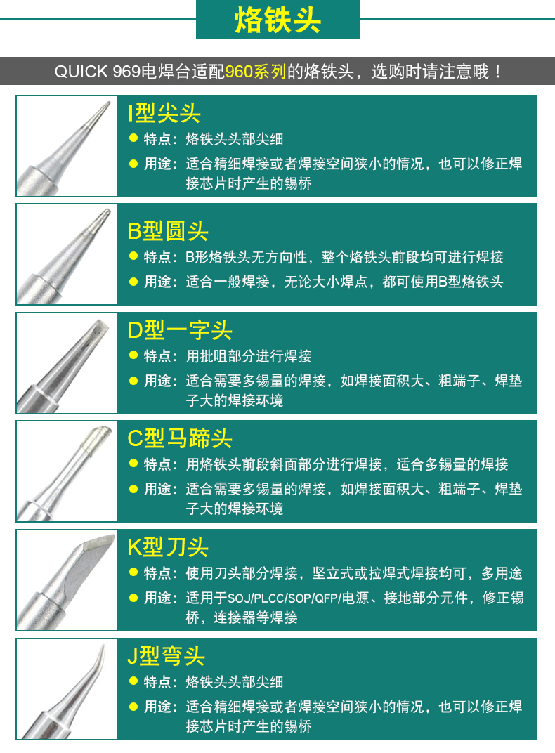 ●注意事项:·烙铁头使用960无铅系列