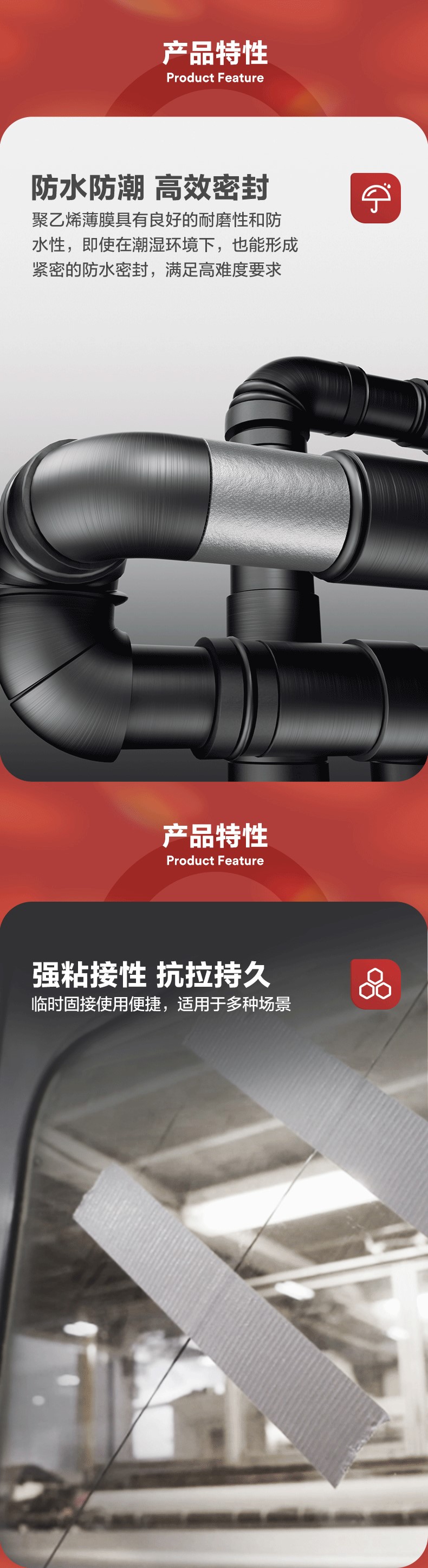 ●用途:·可用于管道密封和塑料薄膜封贴、修补软管、地毯固定等