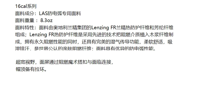 ●产品特征:雷克兰 防电弧头罩AR16-HD-LAS·超宽视野,面屏通过阻燃魔术搭扣与面临连接,帽顶备有拉环。